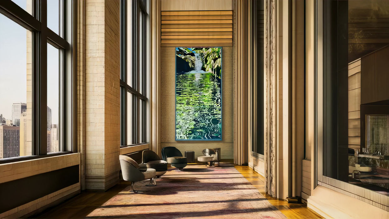 Die Transparenz der Farben mischt sich mit deckenden Farbaufträgen. Die Weichheit des Papiers bettet seine brillanten Farben. „Die Verwendung der Farbpigmente sind meine ureigene Sprache. Ich kenne jedes Pigment persönlich.“ A H wählt ausschließlich das Seitenformat 2:1 oder 1:2. Die Motive im Querformat wirken cinemaskopisch und die Hochformate klassisch unmodern.